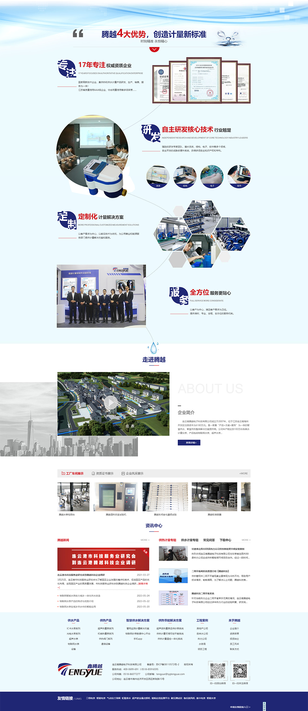 连云港腾越电子科技有限公司成立于2007年,位于江苏连云港海州开发区注册资本为6180万元。是一家集“产品+方案+服务”为一体的智慧供水、智慧供热整体解决方案提供商。公司年产能达到100万台各类水计量仪表,产品包括物联网水表、超声水表、消火栓智能终端、智慧水务管理系统等。采用5G、NB-IoT等物联网技术成为国内领先的能源计量企业。