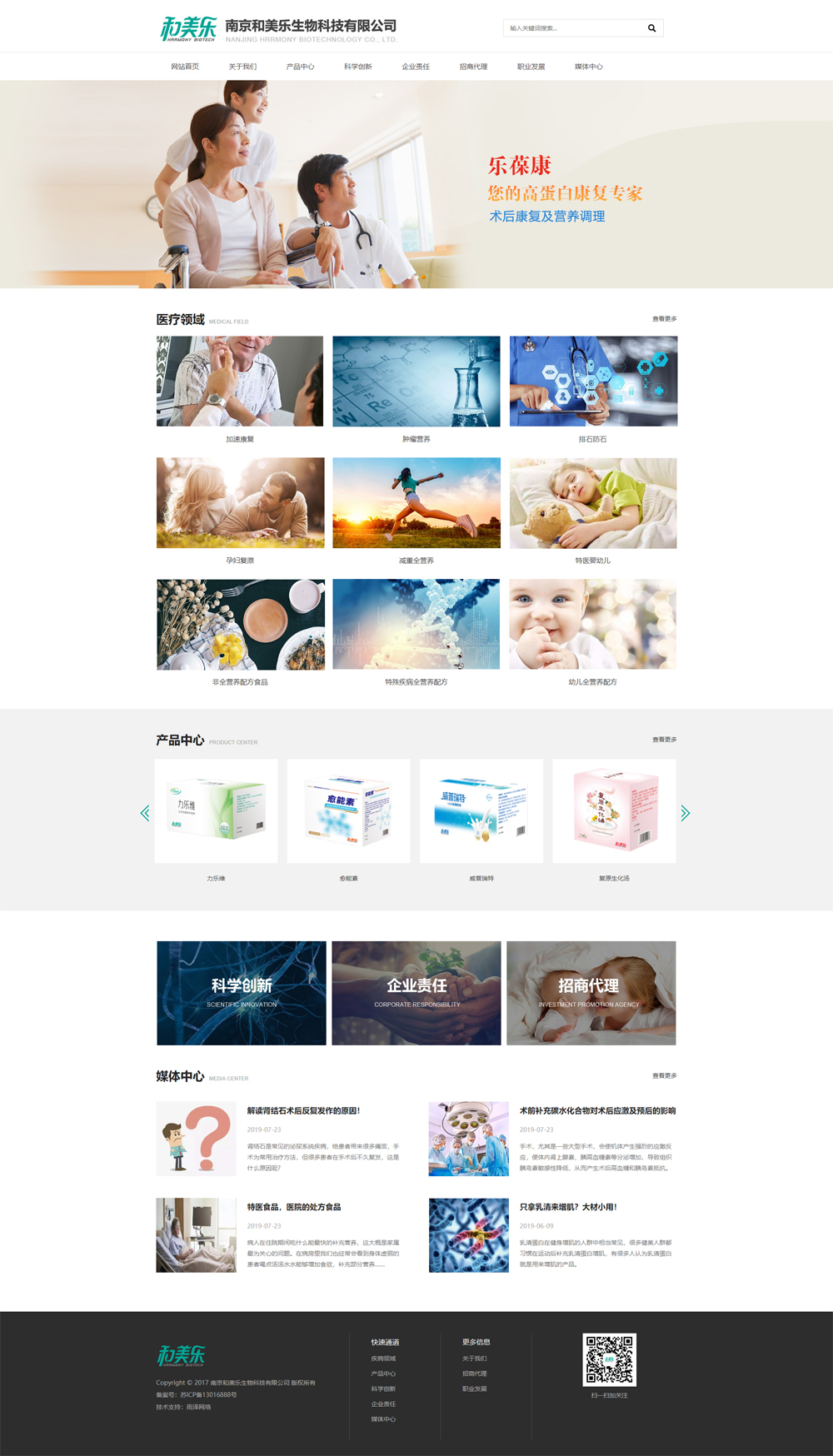 南京和美乐生物科技有限公司是一家以研发和生产营养保健食品、特殊膳食、特殊医学用途配方食品为主的新型生物技术有限公司。公司秉承食品安全与营养健康的理念,拥有资深学术专家引领的专业研发团队以及符合食品安全良好生产质量管理规范(GMP)的生产车间,与国内外权威学术机构深度合作,自主研发与创新,成为一家具有自主知识产权特色的专业生产特殊医学用途食品和特殊膳食食品的优良制造商,立志跻身于营养类食品国际品牌行列。公司关注科学营养与营养辅助治疗的领域,致力于孕产妇、婴幼儿、中老年等特定生理时期及特定疾病状态人群,提供科学有效的营养解决方案。